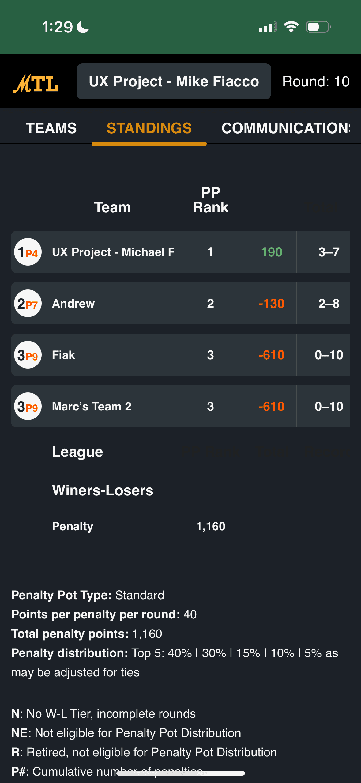 The "Commissioner's Corner" within MTL isn't very useful. According to our interviews, Commissioners only use this section at the beginning of the season to invite players and at the end for final standings.